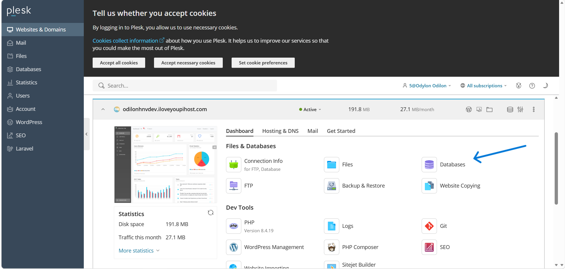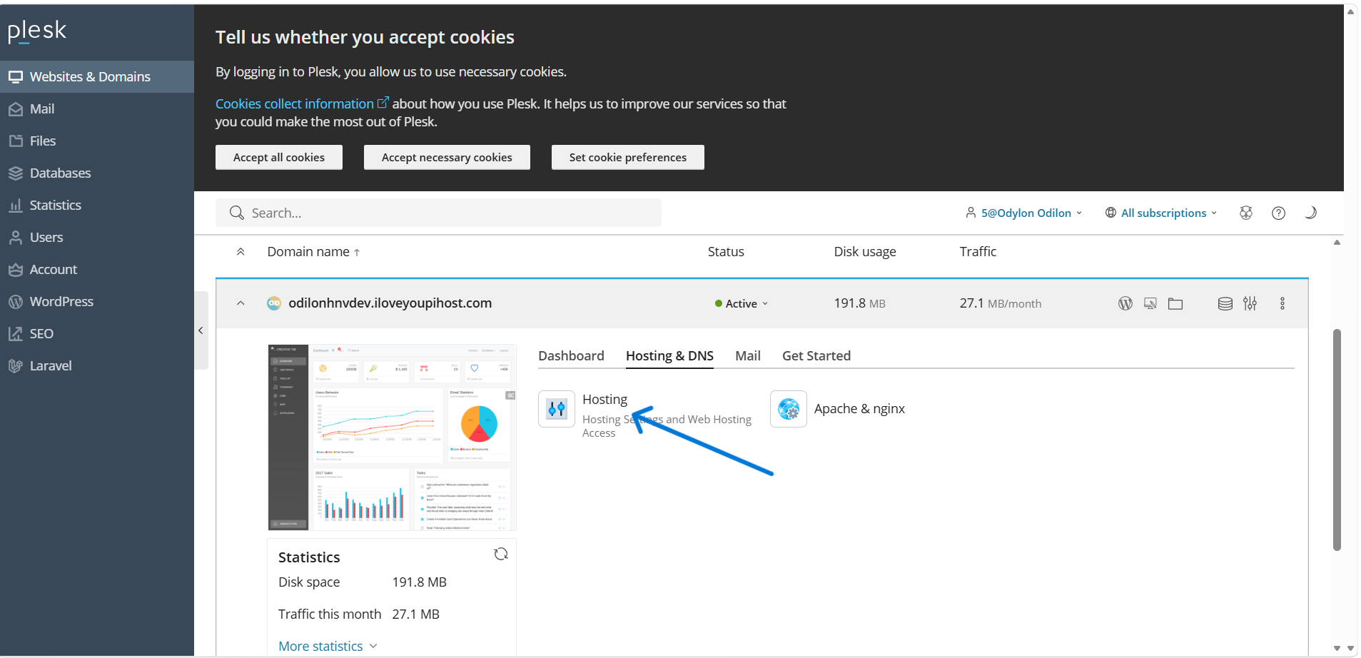 Retournez sur le tableau de bord principal de votre domaine dans Plesk.