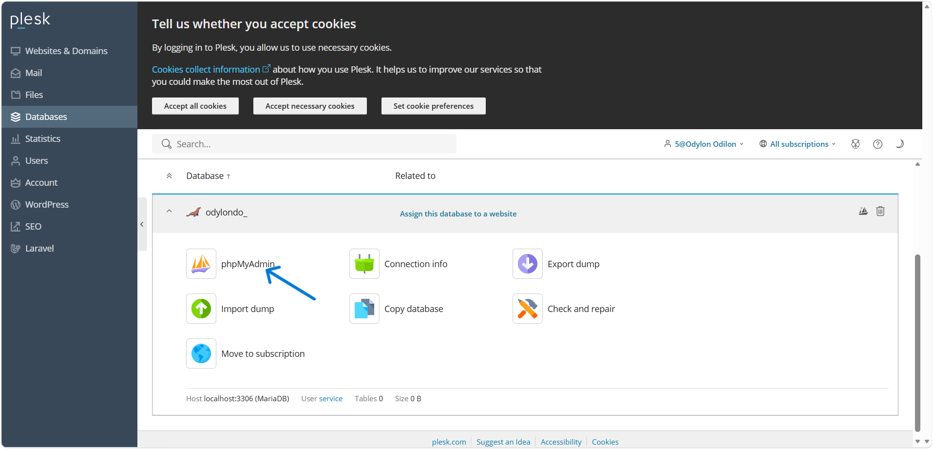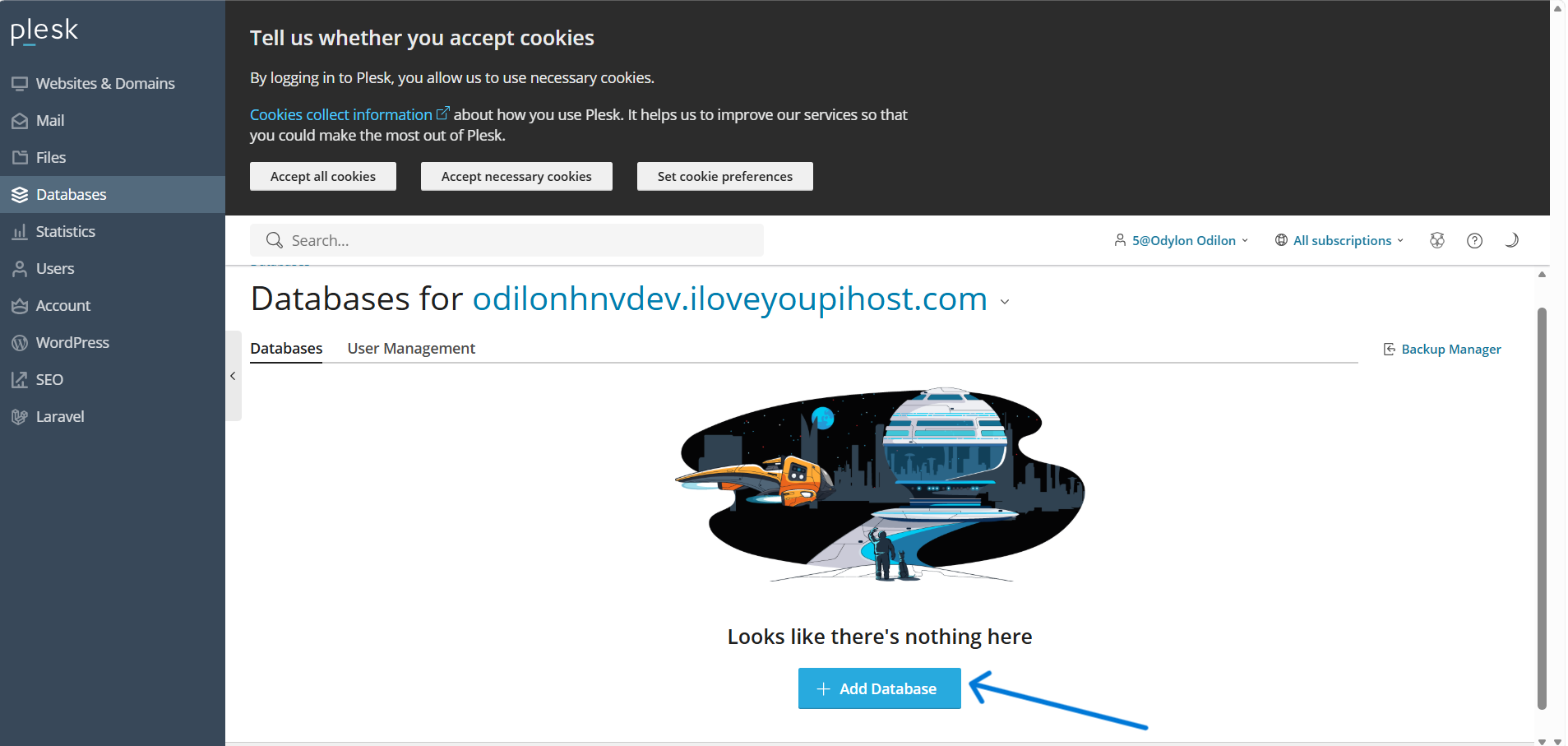 Une application Symfony nécessite une base de données pour fonctionner. Nous allons la créer manuellement via l'interface Plesk.