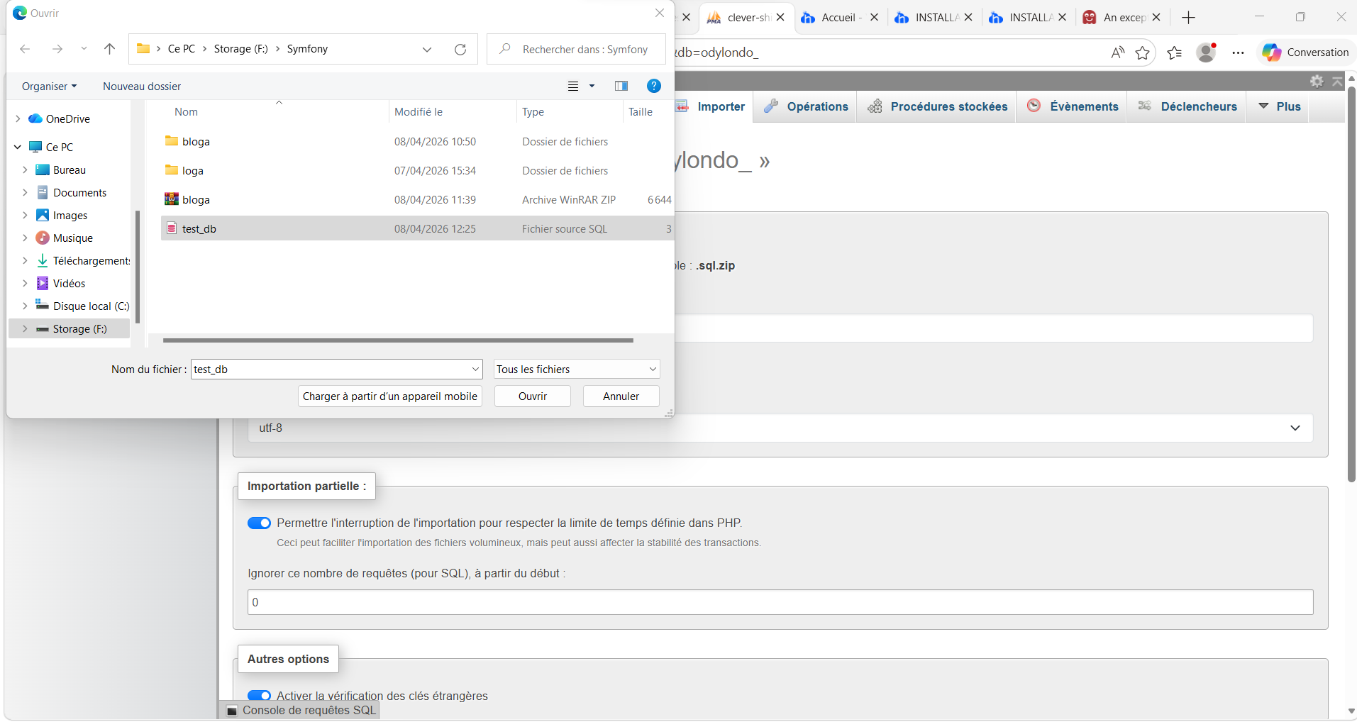 Étape 14 : Importation du fichier SQL
