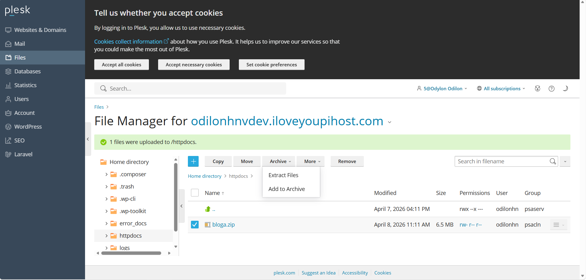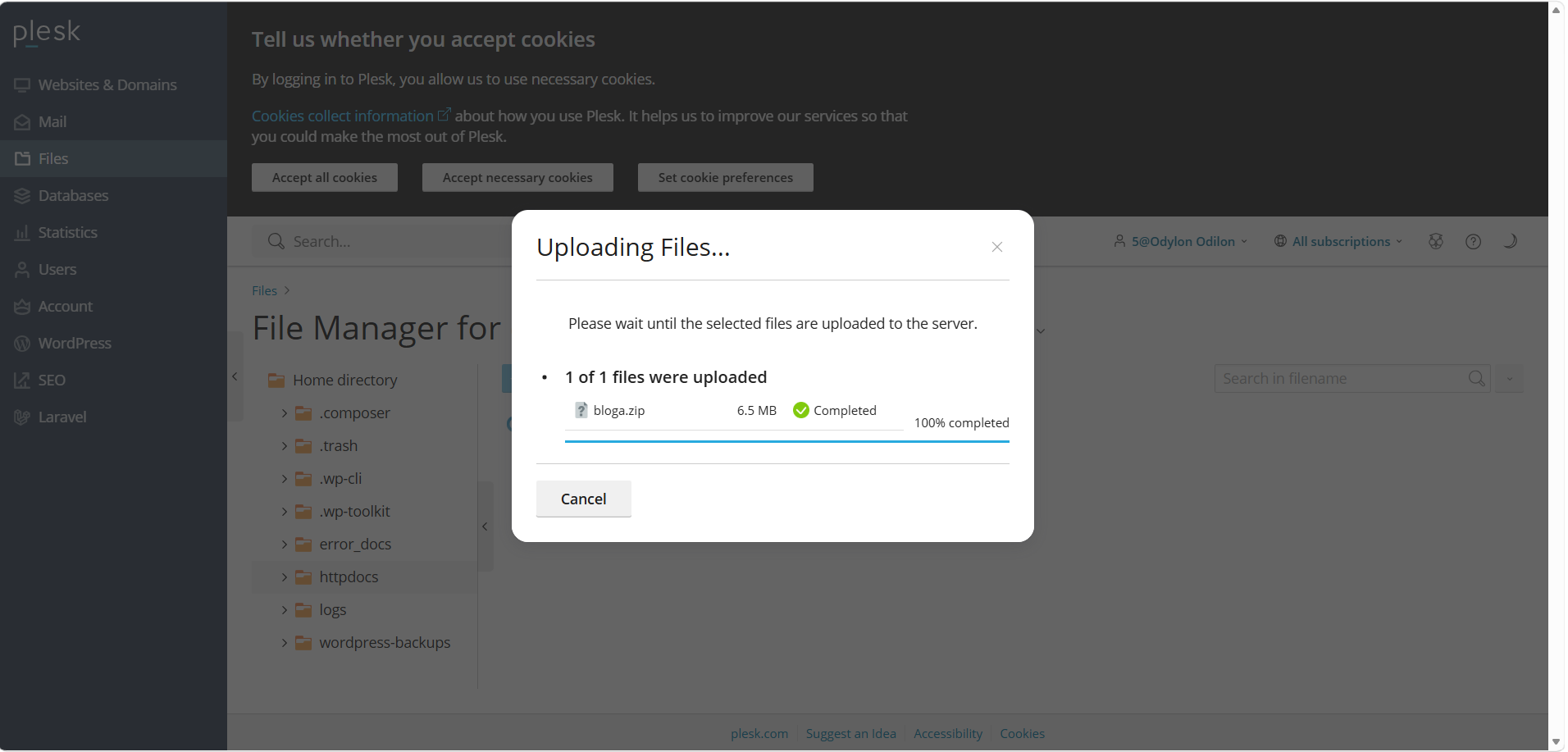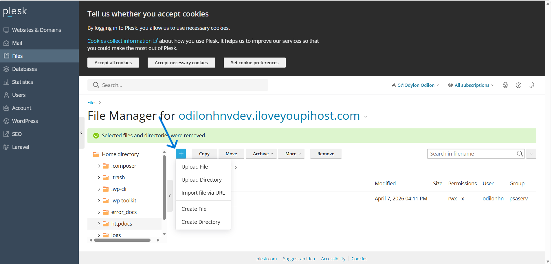 Retournez dans le Gestionnaire de fichiers de Plesk.