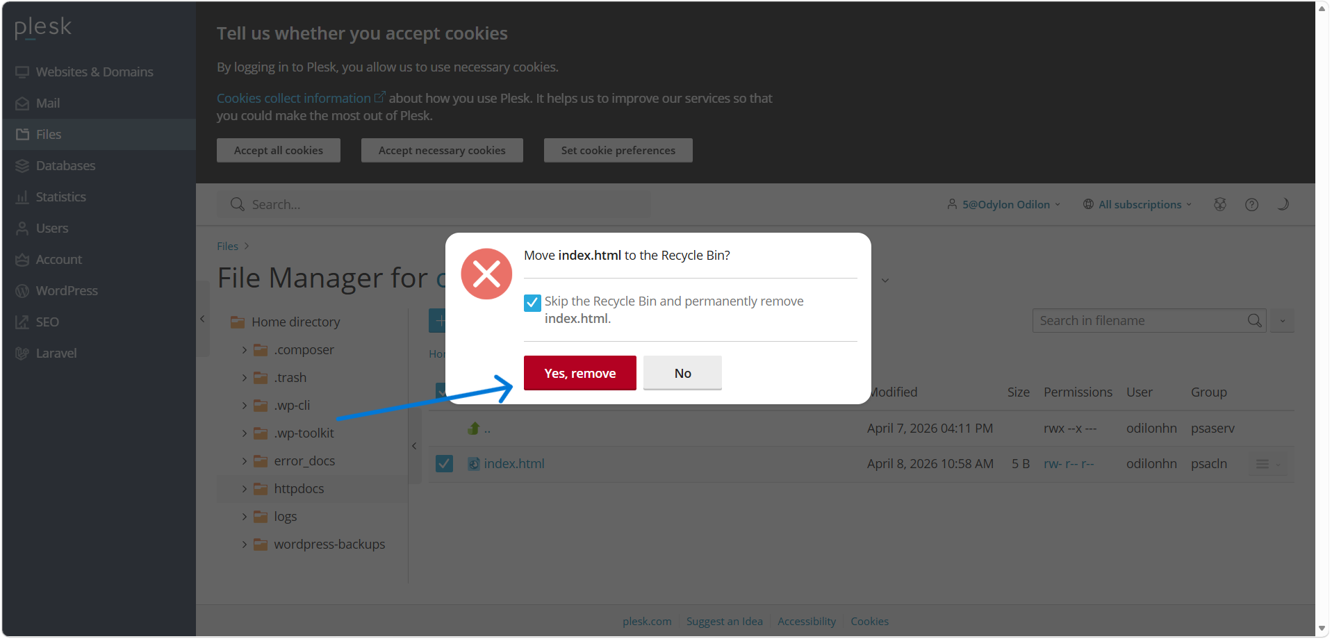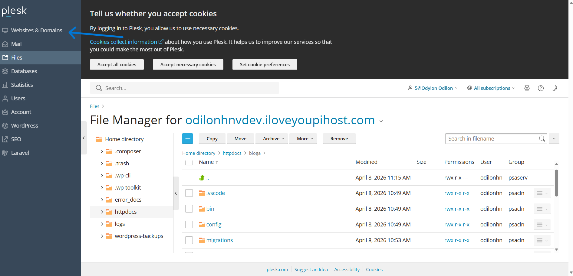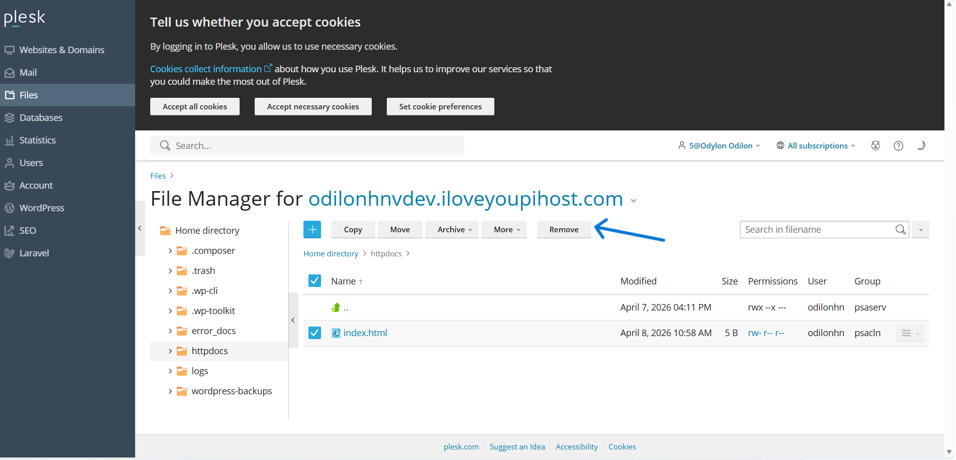 Retournez dans le Gestionnaire de fichiers de Plesk.