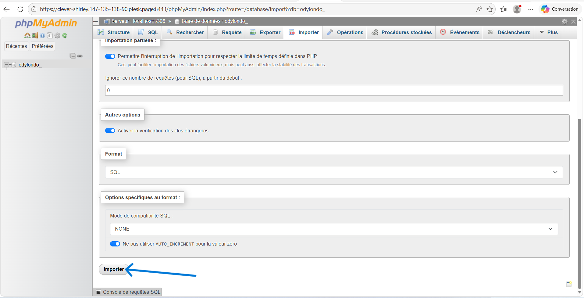 Vérifiez que votre base de données est bien sélectionnée dans le menu de gauche.