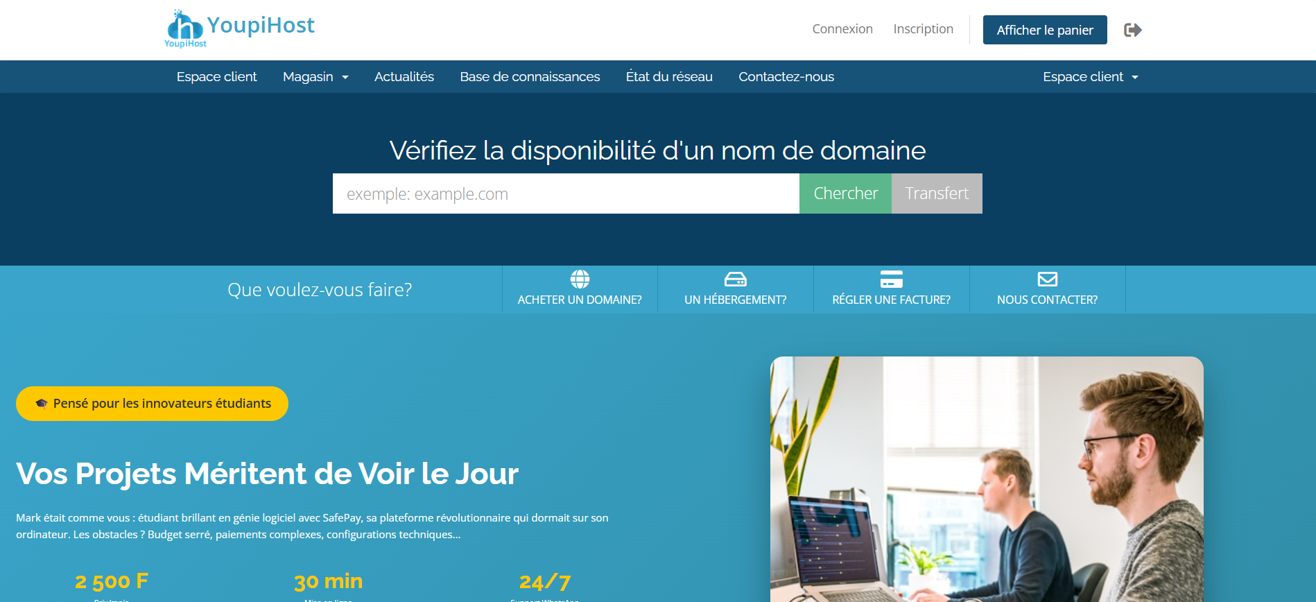 Bienvenue sur le guide complet pour les étudiants souhaitant s'inscrire, se connecter et acheter un hébergement sur la plateforme YoupiHost. Suivez nos instructions étape par étape pour profiter rapidement de nos services.