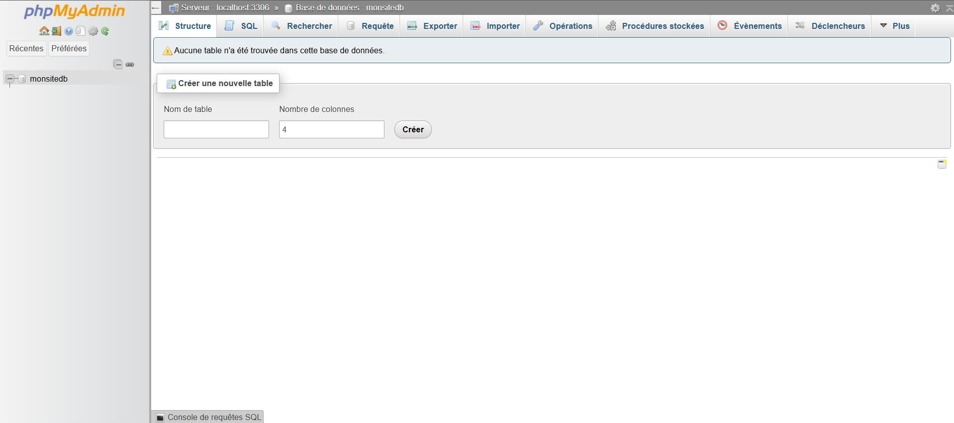 Vous accéderez à l'interface phpMyAdmin, un outil très connu pour la gestion des bases de données MySQL. Depuis cette interface, vous pouvez :